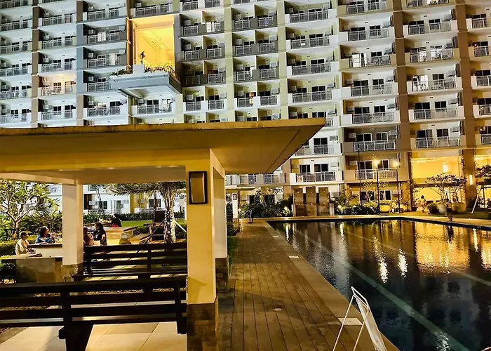 '70S Bistroから徒歩でわずか5分の場所に位置するベッドルーム1室のマニラ市Free Parking 2B/R @Infina Towerアパートメントからは、プールの景色を眺めることができます。 涼しいプールでくつろぐこともできます。